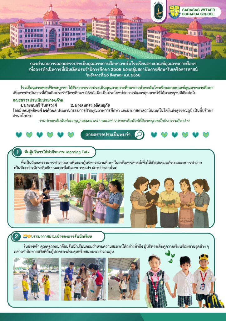 กองอำนวยการออกตรวจประเมินคุณภาพการศึกษาภายในโรงเรียนตามเกณฑ์คุณภาพการศึกษาเพื่อการดำเนินการที่เป็นเลิศประจำปีการศึกษา 2568 ของกลุ่มสถาบันการศึกษาในเครือสารสาสน์