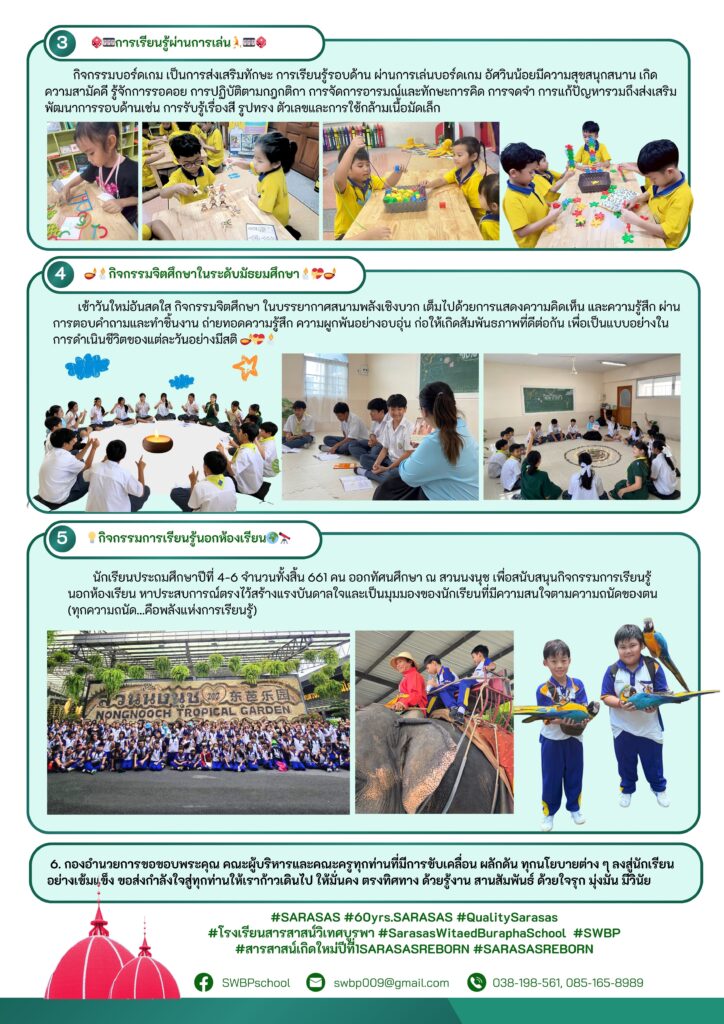 1. ทีมผู้บริหารได้ทำกิจกรรม Morning Talk ซึ่งเป็นวัฒนธรรมการทำงานแบบทีมของผู้บริหารสถานศึกษาในเครือสารสาสน์เพื่อให้เกิดสนามพลังบวกและการทำงานเป็นทีมอย่างมีประสิทธิภาพและเพื่อติดตามงานเก่า ผ่องถ่ายงานใหม่